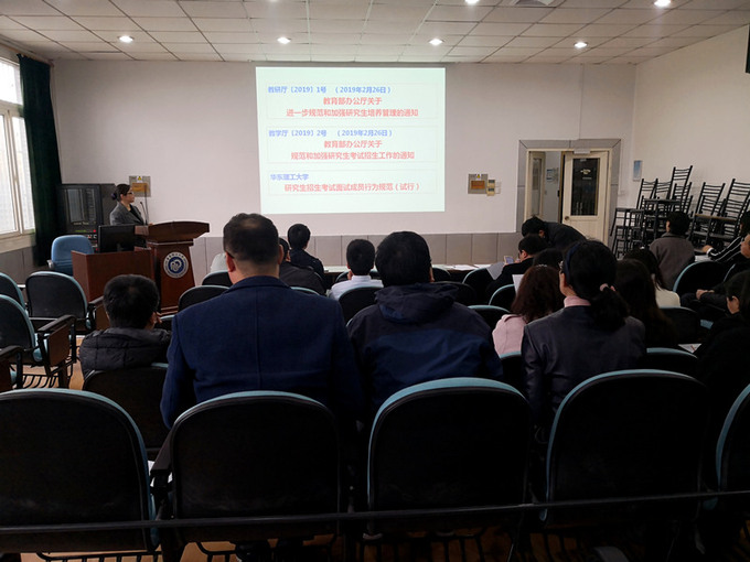 为深入学习贯彻全国教育大会精神,进一步规范和加强研究生招生、培养和管理各个环节,提升公司产品质量,3月21日中午,太阳成集团tyc151cc在学校实验十楼三楼会议室召开2019年度硕士研究生复试工作培训暨全体研究生导师会议。公司党委书记项延训、副书记杨倩、全体导师及参加2019年研究生复试的工作人员参加会议。会议由学院副经理章兰珠主持。