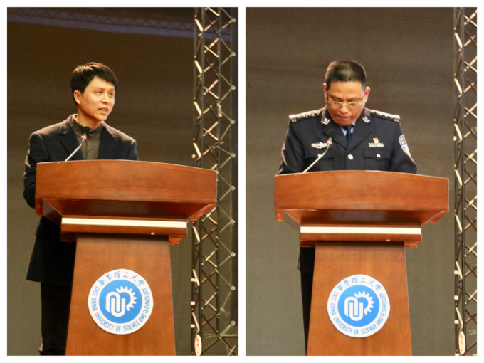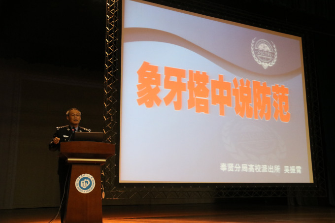 揭牌仪式后,高校派出所警官吴振霄为学院2017和2018级员工做了题为“象牙塔中说防范”的安全教育讲座。他围绕大学中常见的安全问题,以丰富生动的案例为同学们一一揭穿各种骗局,告诫同学们一定要增强自我防范意识,严守校纪校规,让犯罪分子没有可乘之机。吴警官语言风趣幽默,与同学们亲切互动,引起了他们的深深共鸣。