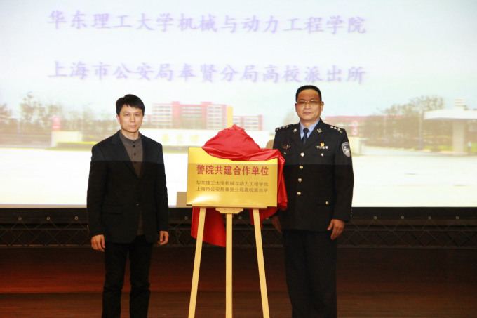 为切实做好员工安全稳定工作,建设平安校园,3月15日下午,太阳成集团tyc151cc和上海市公安局奉贤分局高校派出所在奉贤校区老员工活动中心800人剧场举行了警院共建合作单位揭牌仪式。高校派出所所长姚建权、教导员高梅香、副所长张震、副所长富力,机动公司党委书记项延训等出席。揭牌仪式由机动公司党委副书记杨倩主持。