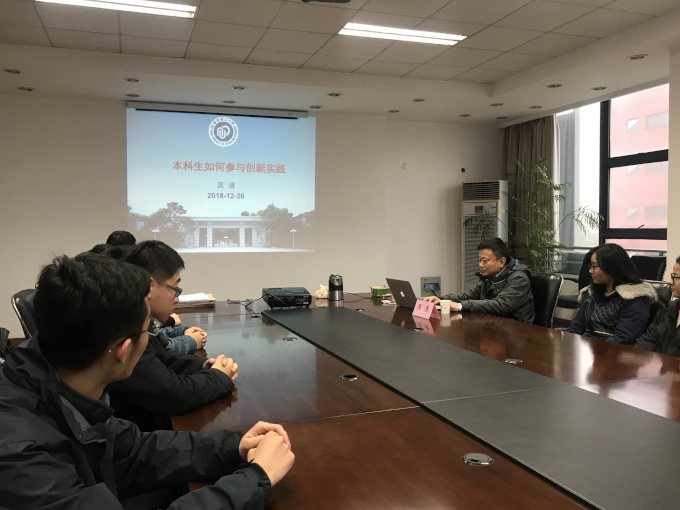 2018年12月26日,机动学院第三期“教授聊天室”活动在奉贤校区实验六楼423会议室举办。此次活动以“本科生科研训练与创新实践”为主题,邀请学院高级实验师吴清与奉贤校区本科生进行面对面的沟通交流。