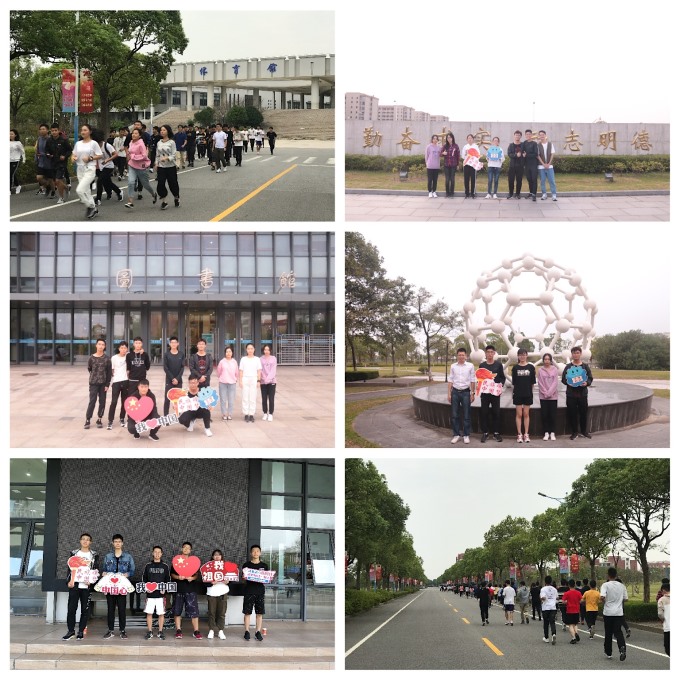 项延训在晨跑活动开始前勉励同学们:强健的体魄是一切学习和生活的基础,希望同学们要加强体育锻炼,通过晨跑活动让自己保持清醒的头脑,从而开启一天的高效学习生活,达到强身健体的目的。简短的晨跑启动仪式后,近150名同学在老师的带领下,从体育馆出发开启了校园晨跑,途经南正门、C60分子模型、图文信息中心,最后到达晨跑终点一食堂。本次活动在校园各标志性建筑均设立了打卡点,同学们手持标语合影,表达对祖国和学校的热爱之情。