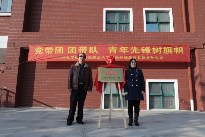 邵根初在开场致辞中表示,柘林学校将尽力为华理机动学院的员工党员和志愿者搭建一个党性锻炼和志愿服务平台,希望学院的员工党员和志愿者能够充分发挥专业优势,助力实现党组织之间的“资源共享、优势互补、互利双赢”,为柘林学校员工拓展学习兴趣、为柘林学校老师补充教学资源,展现华理学子风采。随后,杨倩与邵根初签订了结对共建协议并共同为实践基地揭牌。