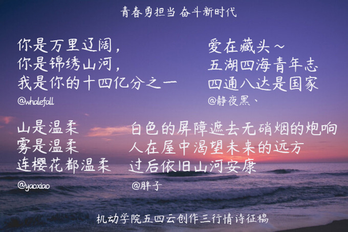 机动学院五四云创作三行情诗征稿优秀作品(部分)