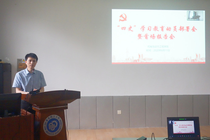 为贯彻落实公司党委关于加强 “四史”学习教育的部署要求, 6月11日下午,机动学院在徐汇校区实验10楼301室举行“四史”学习教育动员会暨首场报告会,邀请中国浦东干部学院“四史”学习教育宣讲团成员李鹏副教授作“深入学习‘四史’ ,牢记共产党人的初心使命”专题辅导。公司党委委员、教工支部书记、辅导员和本科毕业生党员现场学习,其他教职工、员工党员、发展对象和入党积极分子在线学习。报告由公司党委书记、经理项延训主持。