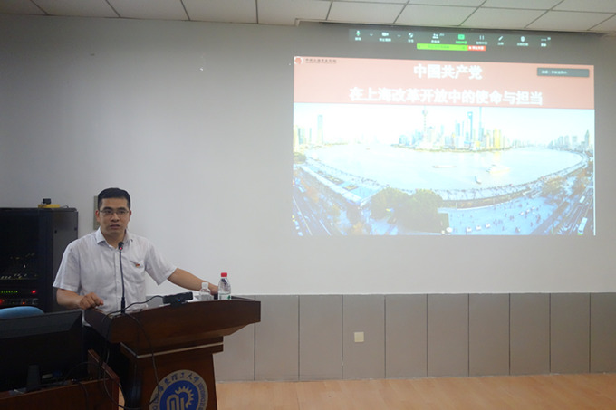 罗鹏部用丰富的史料带领师生们回顾了上海改革开放的发展历程。在坐困愁城的八十年代,上海的党员干部展现出了强烈的忧患意识、敢于担当的责任意识、与群众同甘同苦的精神;从八十年代后期开始,靠着上海党员干部“敢为天下先”的创新精神和攻坚克难的胆识与智慧,上海负重前行、奋力发展,通过“九四专项”、金融破局、土地批租、浦东开发开放等一系列重大举措,发生了翻天覆地的变化;在新时代的征程中,上海勇挑重担、创新发展,将按照习近平总书记的指示,“继续当好全国改革开放排头兵、创新发展先行者,为全国改革发展稳定大局作出更大贡献”;最后,罗鹏部与大家分享了上海改革开放40多年来给我们留下的宝贵精神财富,正是这种“胸怀全局、勇于担当,开拓创新、敢为人先,坚忍不拔、善作善成,求真务实、追求卓越”的精神品质激励着我们不断前进,奋力走好新时代的长征路。