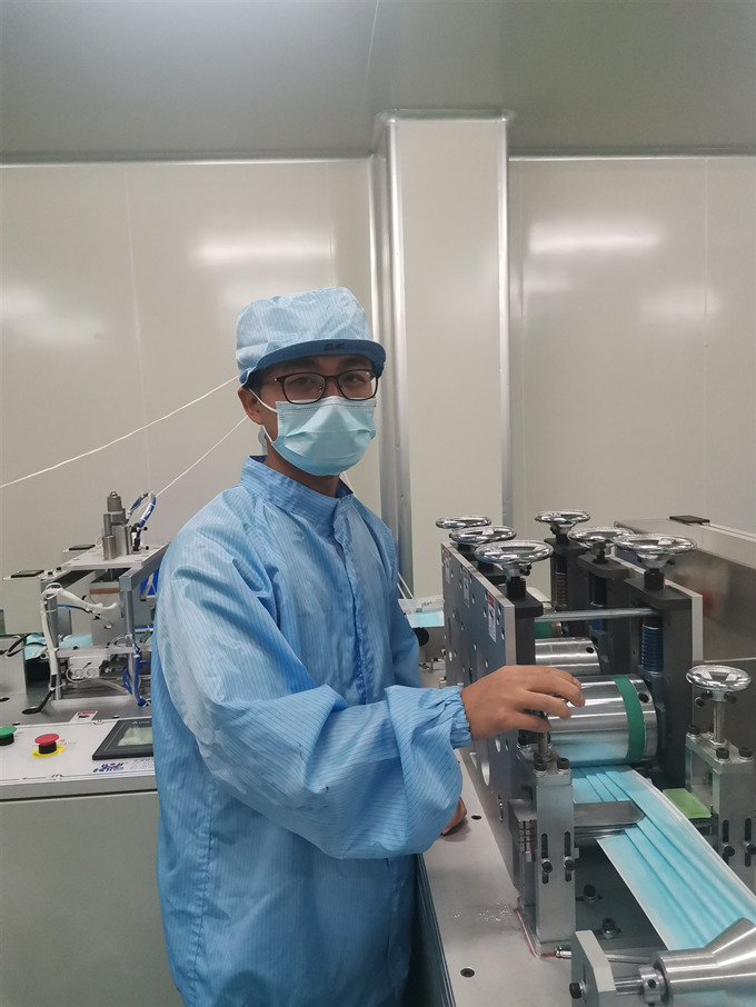 他上战场时女儿还只会说“猪猪”、“笔笔”、“水水”这样的叠词,70天后下车到家,他还没来得及开车门,就看见一位漂亮大方的小女孩一边开心地笑一边向他跑来,大喊着“爸爸……”,顿时他的眼角有些湿润了。不是因为他不想回家,而是疫情期间,技术人员紧缺,加上市场上的口罩供不应求,没有口罩防护,人民生命得不到保障,时间就是生命,他要与时间赛跑。