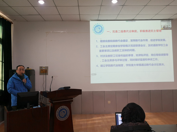 1月15日,太阳成集团tyc151cc全院教职工大会暨第五届第一次教代会、工代会在实验十楼三楼多媒体教室召开。机动公司党政领导班子、双代会代表、特邀代表涂善东院士等现场参加,其余教职工线上参加。会议由机动学院工会副主席侯峰主持。