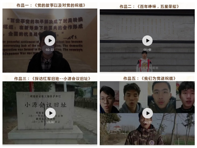 为献礼建党100周年,学院以“献礼建党百年,彰显青年初心”为主题开展了社会实践红色作品征集展示专项活动,依托班级团支部开展小规模、互动式、有特色、接地气的祝福和故事视频征集,力争实现“建党百年”活动全覆盖,着力打通青年爱党爱国教育“最后一公里”。 “初心传承 使命在肩”“青春勇奋进”“我们为党送祝福”等实践团结合学院特色和专业特点录制《百年峥嵘,五星荣耀》《党的故事以及对党的祝福》《探访红军旧地--小源会议旧址》等10余个红色视频,在社会实践中进一步厚植了爱国之情、报国之志。