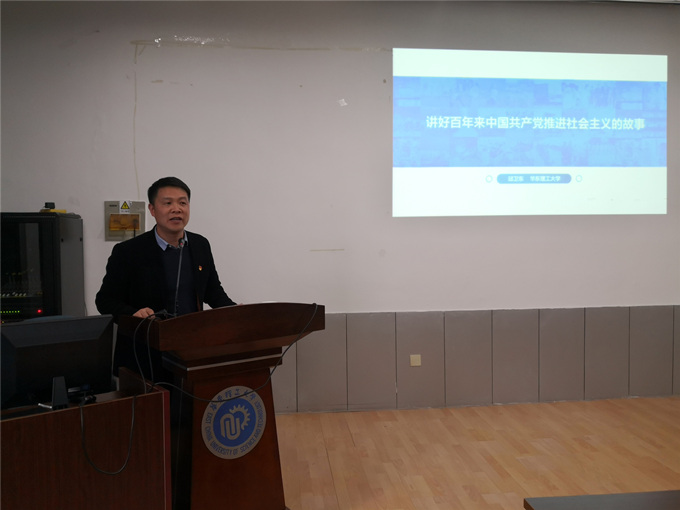 邱卫东从 “在摆脱外部反思进而认清中国革命道路的真谛中取得新民主主义革命胜利”“通过计划经济体制下的工业化为新中国在国际体系中的出场奠定前提基础”“在破解世界体系中践行社会主义的悖论式难题中成功开创中国特色社会主义”和“在直面21世纪全球化市场化的巨大挑战中开拓中国特色社会主义新时代”四方面阐述了中国共产党推进社会主义的故事,系统深入的展现了中国共产党百年来始终秉承社会主义原理方法和价值立场,领导中国人民在不同历史时期进行革命、建设、改革、新时代发展中深入推进社会主义发展的实践历程以及其中蕴含的精神品格。整场报告对全体教职工学好用好党史,汲取坚定信仰的力量和克服前进征程上的挑战带来了深刻的启发与思考。