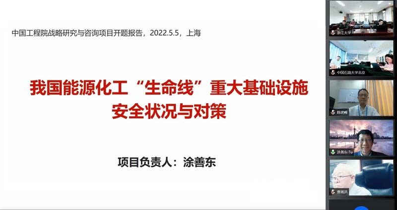 5月5日,中国工程院重点咨询项目“我国能源化工‘生命线’重大基础设施安全状况与对策”项目启动会通过视频形式召开。项目负责人涂善东院士主持会议,中国工程公司党组成员、秘书长陈建峰院士出席会议并致辞,曹湘洪、王一德、王海舟、陈学东、郑津洋、张来斌等8位院士,二局樊新岩副局长及项目组主要成员共40余人参加会议。