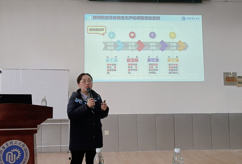 报告中,万永菁结合习近平总书记在全国高校思想政治工作会议上的讲话精神,从课程思政教学设计的基本流程、《数字信号处理》课程中的课程思政教学设计与实践体会、课程思政教学设计的思考三方面讲述了教师如何运用德育的学科思维,提炼专业课程中蕴含的文化基因和价值范式,将其转化为员工的核心价值观具体化、生动化的有效教学载体,在“润物细无声”的专业课程中融入理想信念层面的精神指引。她还讲到精心备课是师德师风的体现,教师的言传身教对思政育人课程目标达成影响深远,只有紧扣课程思政育人目标,以员工为中心,课程思政内容与专业教学内容适配度好、考核方法不拘泥于形式,教学全过程关注个性化培养与过程性评价等才能实现课程思政的育人目标。