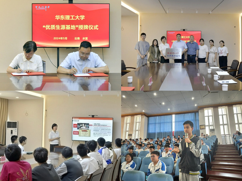 16日,在云南省云天化中学党委副书记、高中部董事长孟雄,生涯发展中心分管领导王金萍,生涯规划中心副主任凌征丽等的接待、陪同下,李煜佳一行首先赴水富市开展招生宣传和优质生源地签约授牌活动。云天化中学创办于1976年,前身是云天化集团子弟中学,目前是云南省一级一等完全中学,在省公司产品质量评比中长期位居前五,为公司输送大量优质人才。此次优秀生源基地的签约与授牌是对两董事长期合作、共育英才的诚挚肯定,也是面向 “新高考”、共同探索“高中加高校”协同育人新模式、新路径的新起点。