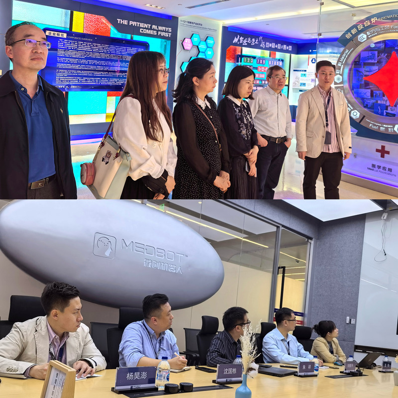 在微创机器人科技发展部杨昊澍的接待下,机动学院的老师们首先参观了企业文化与产品展示中心,详细了解了微创医疗在医疗器械领域的先进技术和生产工艺。微创机器人作为国内领先的医疗机器人研发企业,其产品在提高手术精准度、减少患者创伤等方面具有显著优势,引起了老师们的极大兴趣。随后,双方在会议室进行了深入的交流座谈,就未来的合作方向和具体项目进行了探讨。