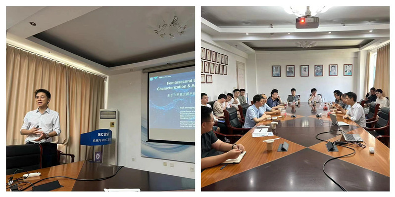 随后,苏众庆作题为“基于飞秒激光超声技术的芯片内部表征及声流控研究”的学术报告,从研究背景、原理和技术特点、技术应用(涡扇发动机叶片亚毫米损伤成像、芯片内部表征、光声镊操控流体微颗粒)等方面介绍飞秒激光超声技术的前沿进展。学院20余位师生参与了学术报告,并就报告内容进行了深入交流和热烈探讨。