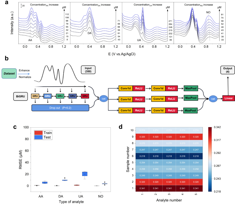抗坏血酸(AA)、多巴胺(DA)、尿酸(UA)和一氧化氮(NO)参与生物体的各种生理和病理过程,对其进行定量检测对于有效预防和诊断这些疾病至关重要。当下,此类传感以贵金属催化剂为主且检测能力单一,无法满足低成本与多功能的应用需求。