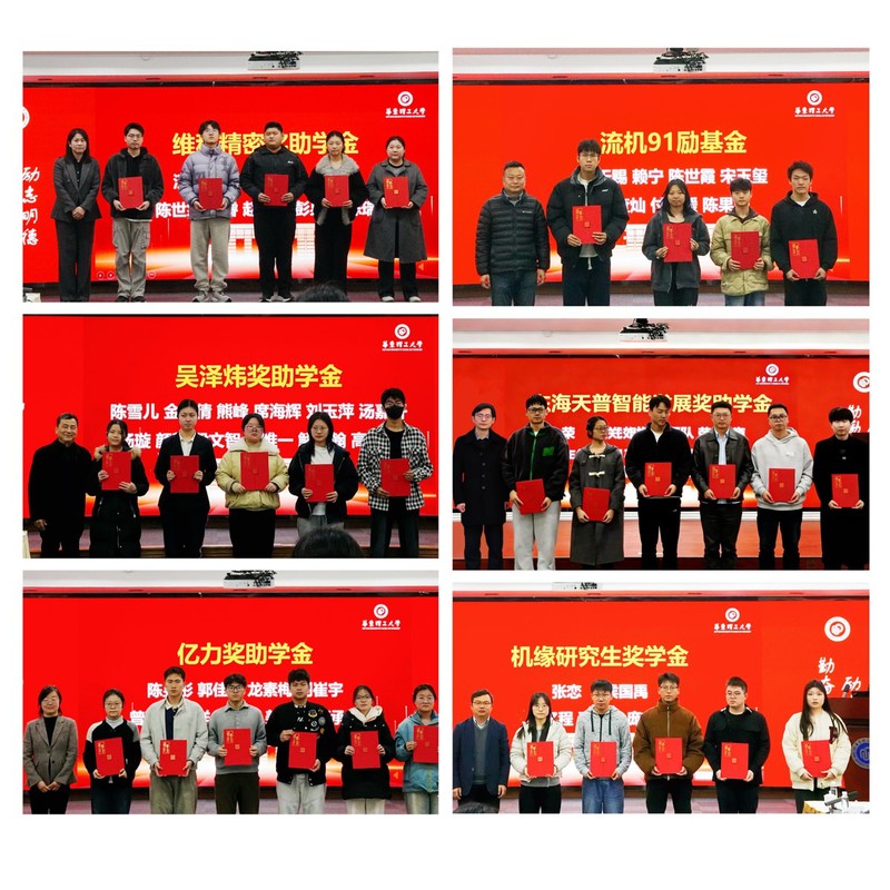 颁奖环节,姜颖、蔡晓卫、吴清、公司党委副书记李煜佳、副经理陈建钧和朱明亮分别为2025年度“维科精密奖助学金”“吴泽炜奖助学金”“流机91励基金”“亿力奖助学金”“东海天普智能发展奖助学金” 和“机缘研究生奖学金”的获奖员工颁发证书。