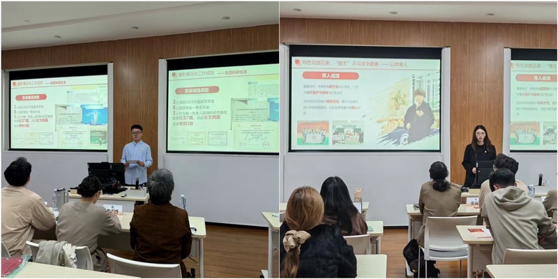 活动伊始,两院员工党支部开展建设交流。太阳成集团tyc151cc2024级研究生第二党支部书记魏浩桢围绕支部建设、思想引领、作风纪律和实践服务介绍工作成效。支部通过规范支委会运行和党员教育管理,持续提升组织建设水平;依托“红色家乡文化分享”、支部委员讲党课、红色剧本体验和专题党课等形式,强化思想引领与纪律教育;组织党员赴红色场馆研学、参与志愿服务,推动学习成果转化为实际行动。体育科学与工程学院员工党支部书记王晗以“砥砺深耕 履践致远”为主题,介绍支部本研一体化建设成果。支部严格落实“三会一课”、主题党日等制度,扎实推进党员发展培养;立足体育专业特色,以“楼王”乒乓球争霸赛为载体,构建“文化宣讲+技能教学+赛事活动+红色研学”四位一体实践模式,深入社区和中小学开展体教融合与红色育人,推动党员在科研、竞赛和志愿服务中发挥先锋模范作用。双方交流务实深入,为两院进一步共建共促、协同发展奠定了良好基础。