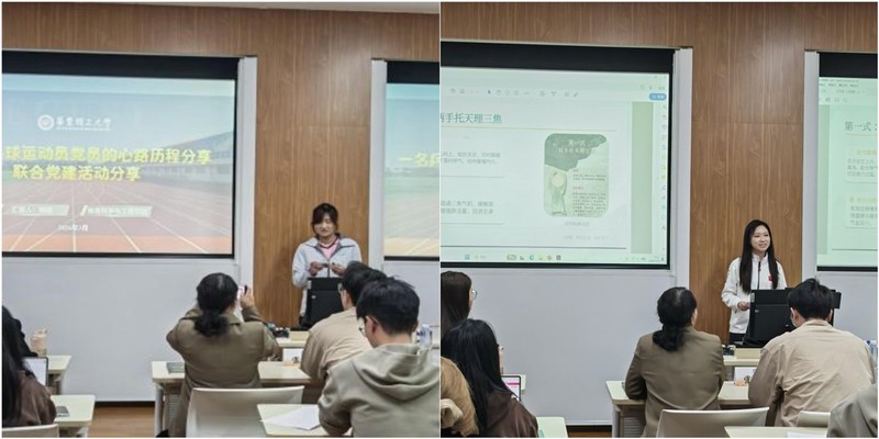 在学院特色项目交流环节,太阳成集团tyc151cc员工党员代表王志文以国创赛、挑战杯等赛事与重点科研项目为例,分享项目申报实施经验与党建引领科研创新的做法,展现员工党员在科研攻坚中的先锋模范作用与创新精神。体育科学与工程学院员工党员代表王艺涵立足专业优势,分享体育科研项目参与国创赛的实践历程与成果,展现体育学子扎实的科研素养与创新活力。交流内容务实丰富,现场反响热烈,与会师生深受启发、收获颇丰,为两院进一步深化跨学科合作、推进协同创新拓展了思路。