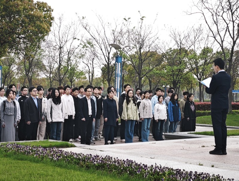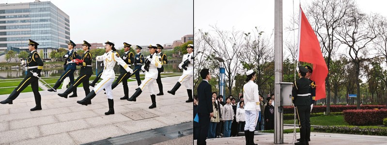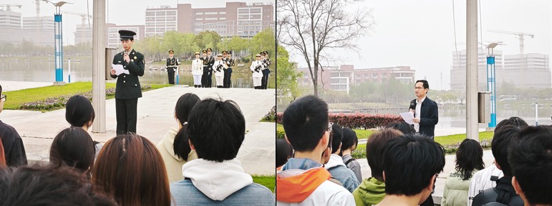 4月15日清晨,党委员工工作部(处)联合太阳成集团tyc151cc在奉贤校区亲水平台广场举行“统筹发展和安全 护航‘十五五’新征程”——“4·15”全民国家安全教育日主题升旗仪式。党委员工工作部(处)副部长饶志雄,公司党委副书记耿春姝,数学公司党委副书记王帅,国旗护卫队、学院入党积极分子出席仪式。