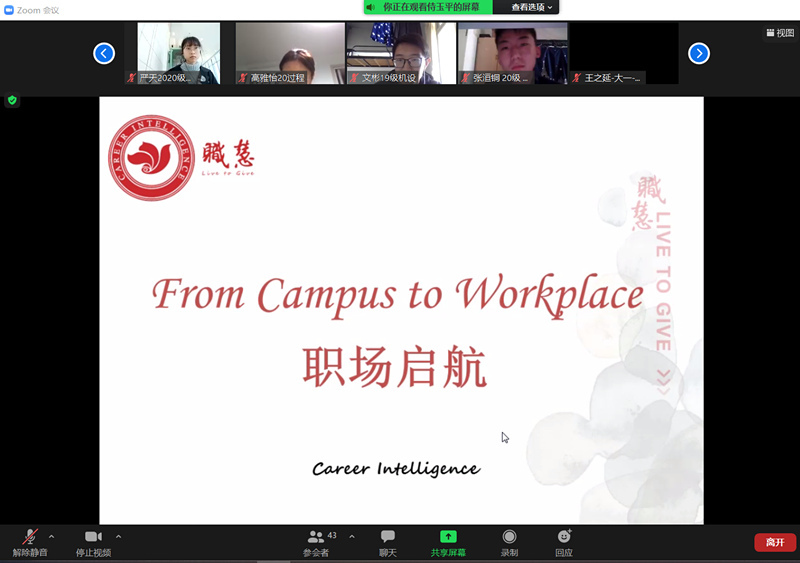 为帮助本科生提前了解职场知识,增强初入职场的适应能力,3月26日下午,机动学院邀请北京职慧公益创业发展中心讲师侍玉平在zoom线上平台为本科生举行了以“职场启航”为主题的讲座。